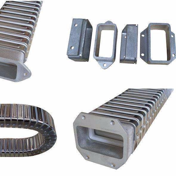 导管防护套,是一种新颖的机床功能部件,它适用于数控机床、加工中心等各类机床作为电线、电缆、液、气软管的防护装置。