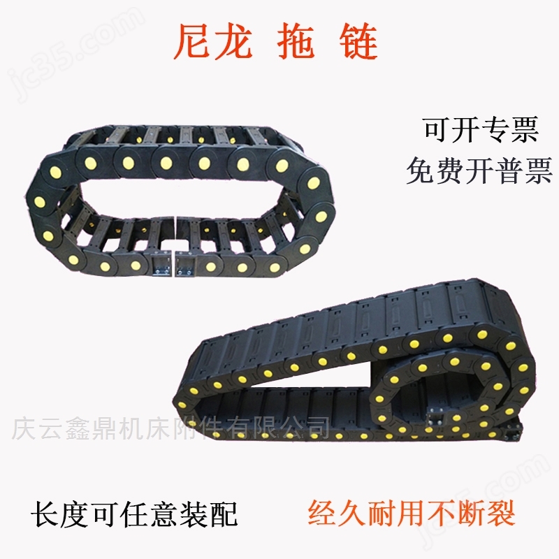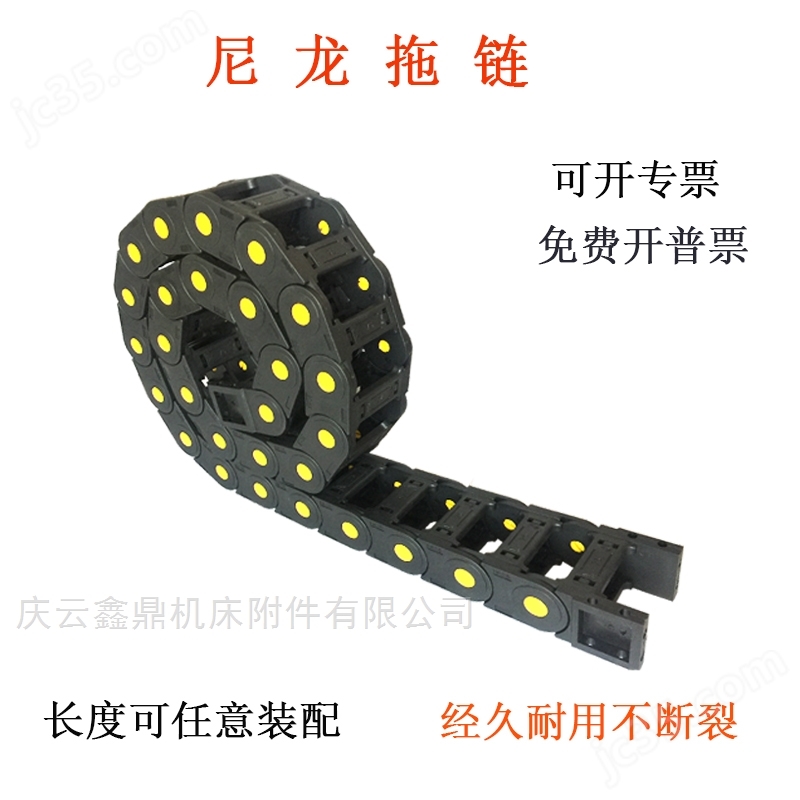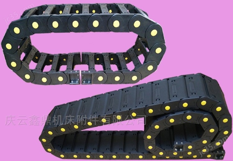 材料性能:采用增强尼龙,具有较高的压力和抗拉负荷、良好的韧性、高弹性和耐磨性、阻燃性,高低温时性能稳定,可在室外使用。尼龙含量一般在30%左右,其含量决定了拖链的使用强度、耐磨性及运行噪音大小。