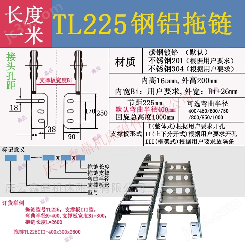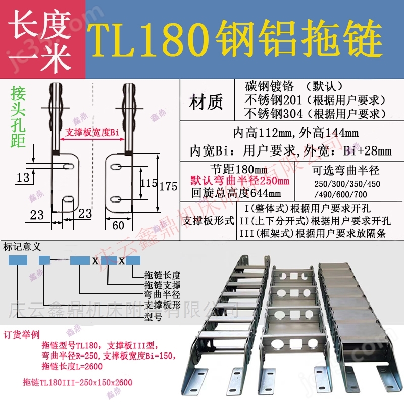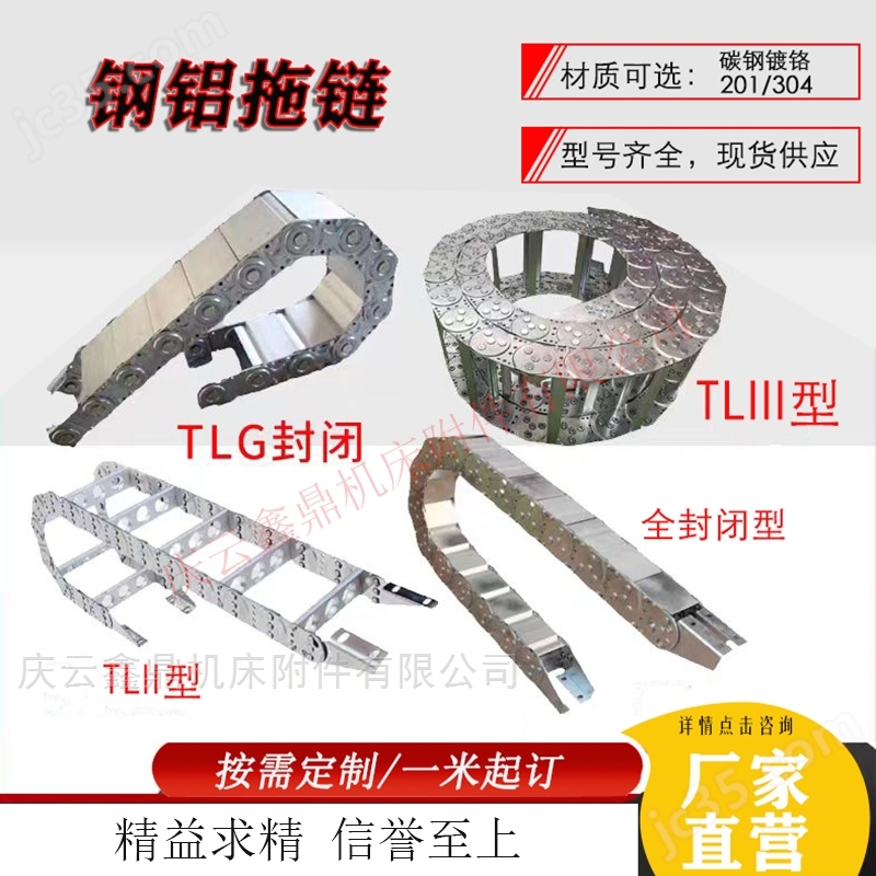 TL180III钢铝拖链桥式不锈钢304金属坦克链:重型机床、钢铁厂、海上石油平台等重载或恶劣环境设备