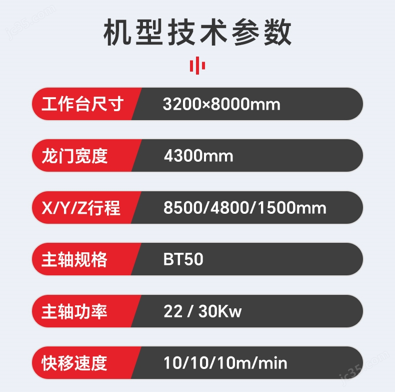 XYZ轴行程:8500/4800/1500mm