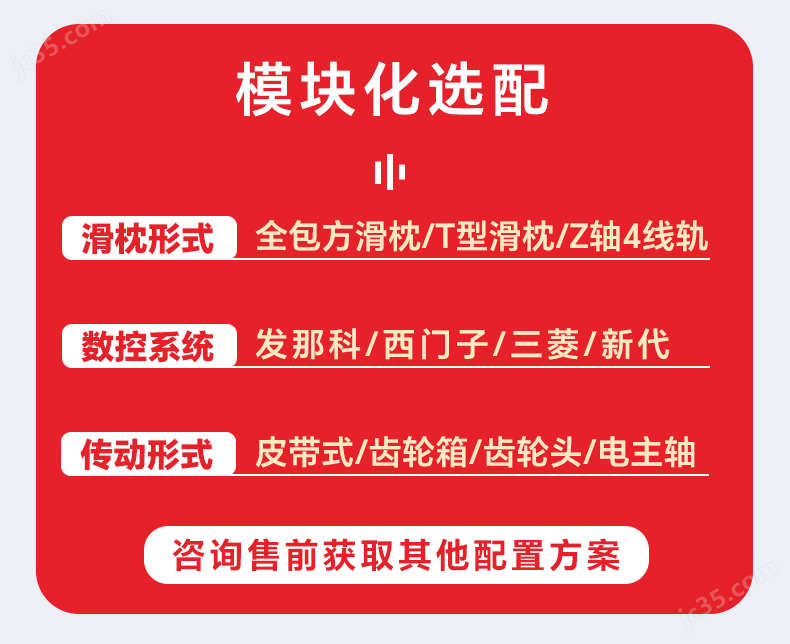 支持非标行程、主轴功率及附件定制,可选齿轮头或二段减速箱配置,满足不同加工深度与材料特性要求。