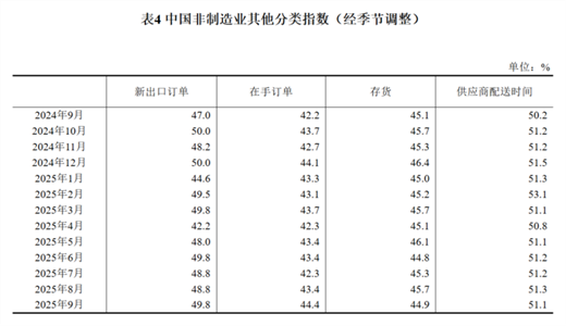 供应商配送时间指数为50.8%,比上月上升0.3个百分点,表明制造业原材料供应商交货时间持续加快。