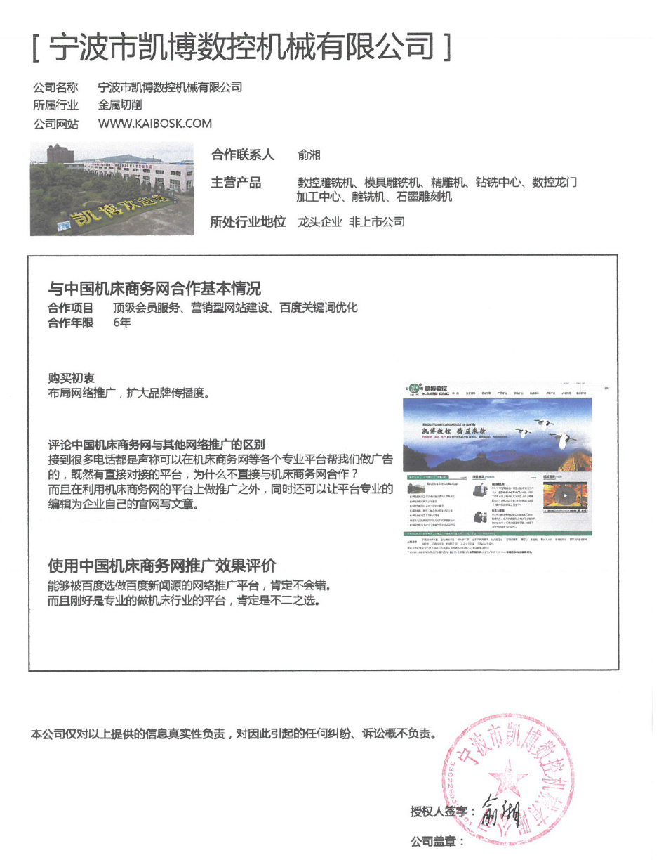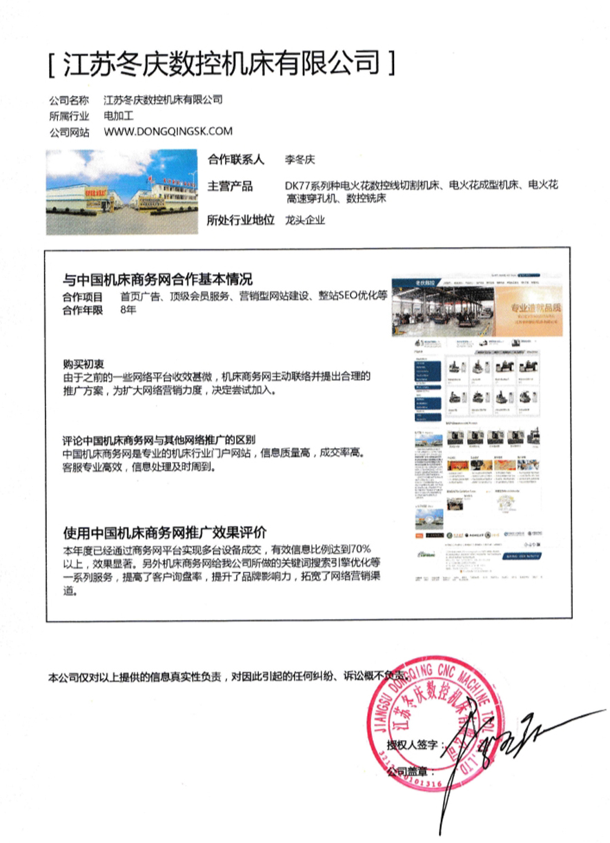 - 上海机床厂对于钱柜qg777所产生的效益非常满意,对于网站的效果和服务也是非常认可的。公司推广负责人这样说道:“钱柜qg777不愧是专业的机床行业门户网站,信息质量高、客服服务帖心,推广效果显著,确实是在认认真真做平台。” 【查看详情】