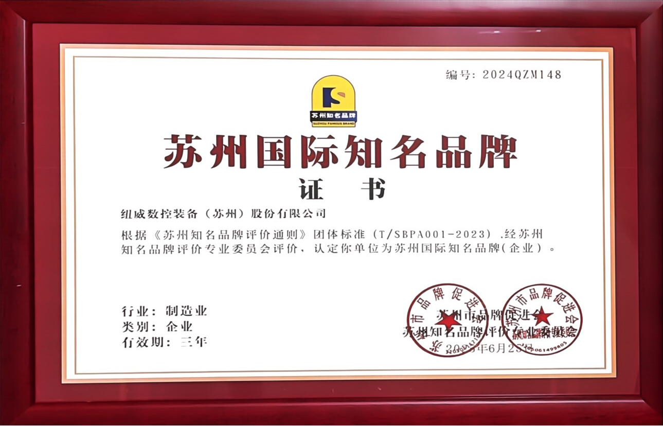 近日,苏州市品牌促进会揭晓“苏州知名品牌”名单,纽威数控荣获“苏州国际知名品牌”称号。