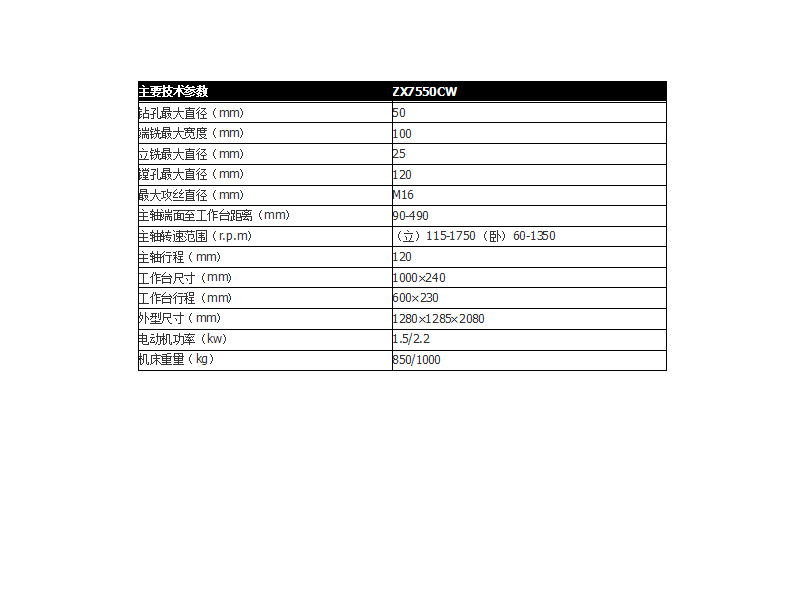 | 主轴转速范围 | (立)115-1750(卧)60-1350r/min | 主轴锥孔锥度 | 莫式4号 |