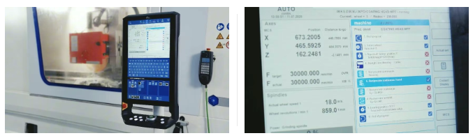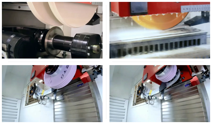 引入砂轮自动更换系统,拥有多达8工位砂轮库:可以在粗磨、精磨以及不同轮廓加工中自动切换,做到一次装夹完成所有工序。