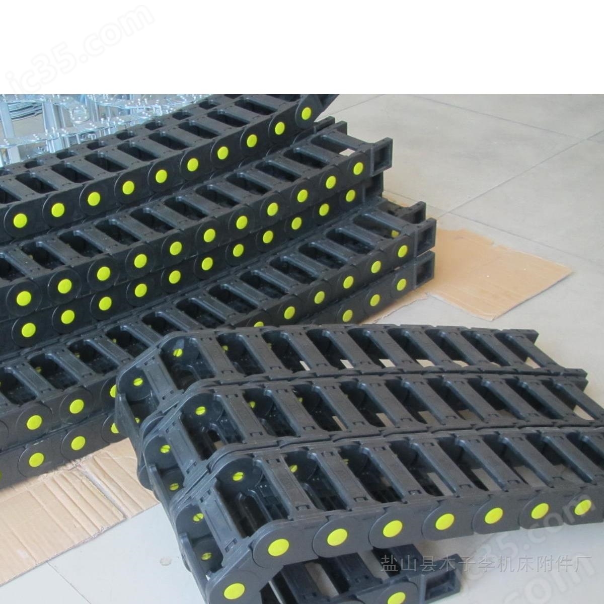 工程塑料拖链适合于使用在往复运动的场合,能够对内置的电缆、油管、气管、水管等起到牵引和保护的作用。它的每一节都能打开,便于安装和维修。运动时噪音低、耐磨,可高速运动。