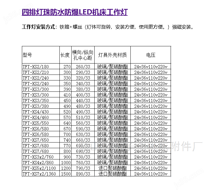 特点:具有防水、防蚀、防爆功能,广泛用于数控机床、组合机床、加工中心及商品展览等照明,光线分布均匀,照明效果好。