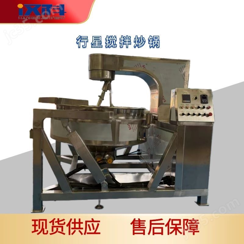 行星搅拌炒锅是一种利用独特的“行星式"搅拌器对物料进行搅拌、混合、炒制、蒸煮、熬炼的高效自动化设备。其名称源于搅拌器类似于太阳系行星的运动轨迹(即同时发生自转和公转),确保了搅拌、受热均匀,广泛应用于食品、制药、化工等行业,尤其适用于处理中高粘度、易粘锅的物料。: