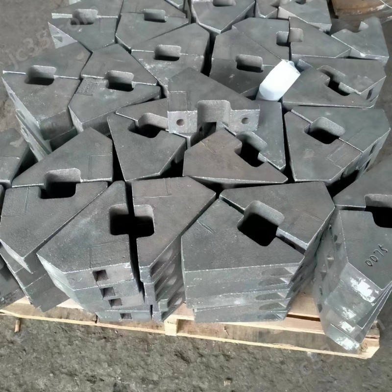 2、性能可靠应用范围广合金锤头具有很高的抗磨功效和安全性能,有效地解决了硬度和韧性之间的矛盾,是针对所含SiO2异常石灰石破碎的耐磨锤头,尤其适于破碎硬质、高SiO2、强磨蚀性石灰石,适应在严酷磨料磨损条件下工作。经济效益好该锤头不易断裂,使用寿命是锻造锤头或高锰钢锤头的3倍以上,适合砂石生产线锤头更换频率高的需求,具有较高的经济效益。