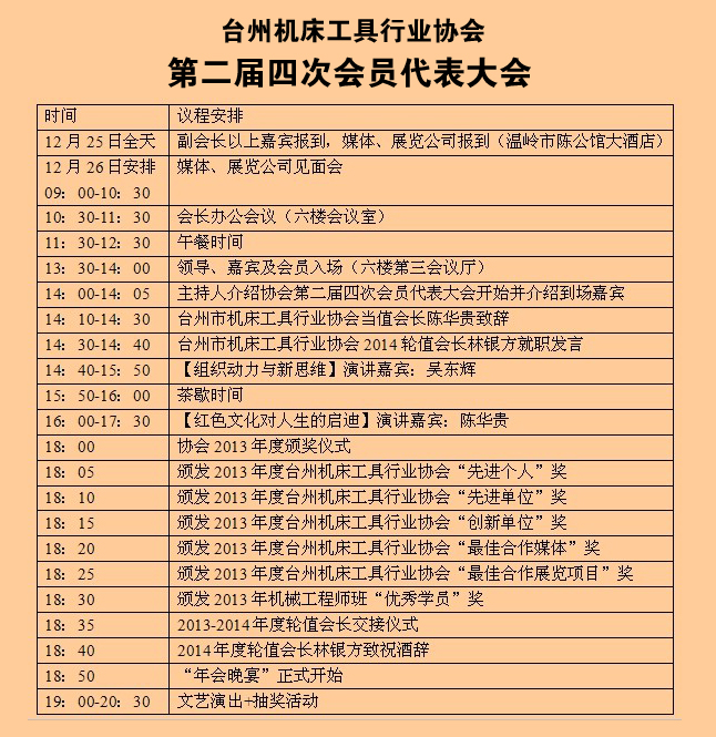 1 获得2013年度台州市机床工具行业协会“先进个人”的是:夏文根、陈方德、陈学奎、陈灵芝、陈京亮、邵道明、章日东、钟超、林义、张喻。 2 获得2013年度台州市机床工具行业协会“先进单位”的是:浙江杰克机床有限公司、台州北平机床有限公司、浙江西菱股份有限公司、台州美克工具有限公司、浙江日进数控刀具有限公司、温岭市华驰机械有限公司、浙江精科计量仪器有限公司、温岭市三和数控机床设备有限公司、浙江上优刀具有限公司、玉环方博机械有限公司。 3 获得2013年度台州市机床工具行业协会“创新单位”的是:浙江海德曼机床制造有限公司、台州赛诺克机械科技有限公司、台州市东部数控设备有限公司、温岭力锋刀具有限公司、温岭市巨鑫机床厂、“新锐青年”工具创业孵化中心、台州市台普数控设备有限公司、台州新发自动化设备有限公司、台州美日机床有限公司、台州市神鹰机床。 4 获得2013年度台州市机床工具行业协会“最佳合作媒体”的是:《机电商报》(报纸类)、《工具商情》(杂志类)、钱柜qg777(网站类)。 5 获得2013年度台州市机床工具行业协会“最佳合作展览项目”的是:重庆立嘉国际机械展览会、温州国际机床工模具展览会、上海国际切削刀具暨工具展览会。 6 获得2013年机械工程师班优秀学员的是:东部数控林云、景耀数控罗华荣、恒大刃具张飞、三爱商贸陈雅奇、大森机床赵玲刚、华驰机械李华海、西菱股份杨学良、新发自动化潘均荣。
